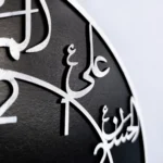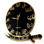 The clock fits both a practical and aesthetic purpose, as its accurate timekeeping mechanism ensures you stay punctual while adding a glimmer of cultural artistry to your living space. Whether placed in a home or religious environment, This “12 Imam Name Wall Clock with Sword” makes for a wonderful and meaningful decor piece, celebrating the religious ancestry and enriching the atmosphere of any room. It is an ideal gift for individuals seeking to express their devotion and gratitude for Shia Islamic traditions, art, and history.