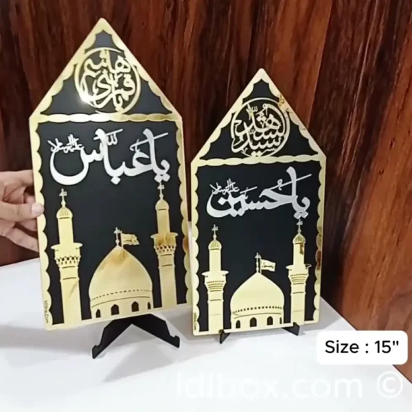 2 in 1 Premium Ya Hussain' and 'Ya Abbas' Wall and Table Patka