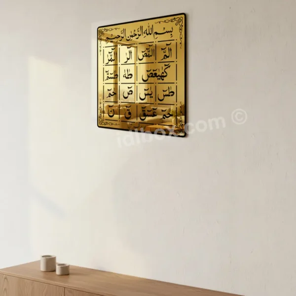 Elevate your living space with the profound spiritual beauty of our Complete Huroof-e-Muqattaat (Loh-e-Qurani) Wall Art. This exquisite piece features the mysterious “disconnected letters” of the Holy Quran, meticulously crafted to serve as both a source of blessings and a sophisticated focal point for your home.