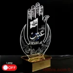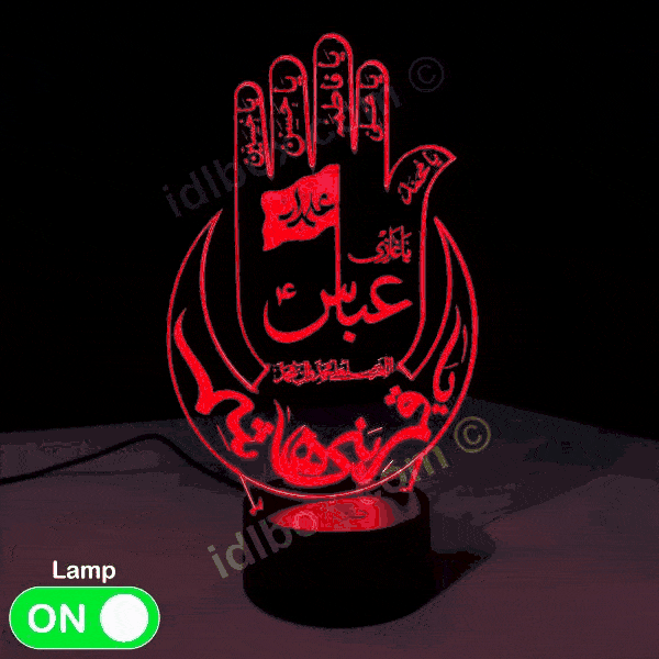 The Hazrat Abbas Alamdar (A.S) Led Acrylic 3D Illusion Lamp is a beautifully crafted tribute to Hazrat Abbas, the revered standard-bearer of Karbala. This lamp features a golden mirror acrylic base that reflects light elegantly, paired with a transparent acrylic panel intricately engraved with the iconic image of Hazrat Abbas’s hand holding the flag high—a symbol of his bravery and devotion. The design incorporates detailed calligraphy and symbolic elements, creating a striking 3D illusion effect when illuminated.