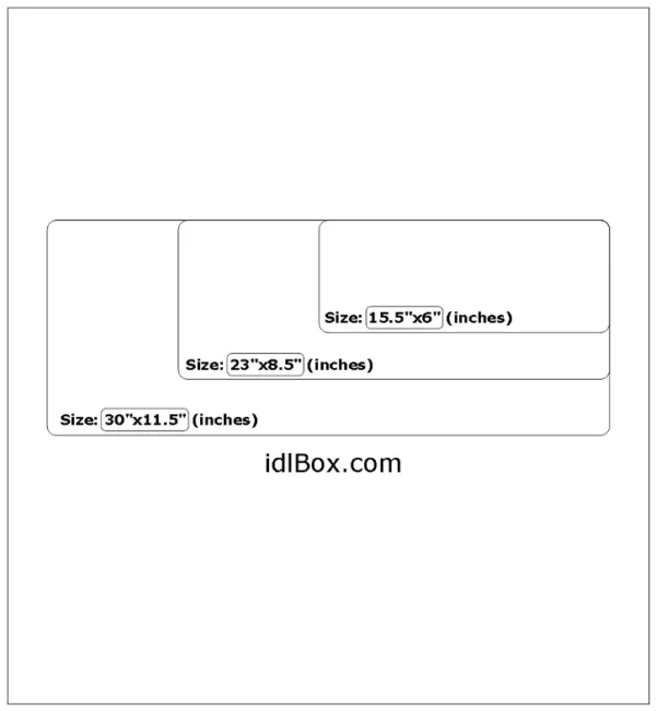 | Size (Inches) | 15.5"x6", 23"x8.5", 30"x11.5" |